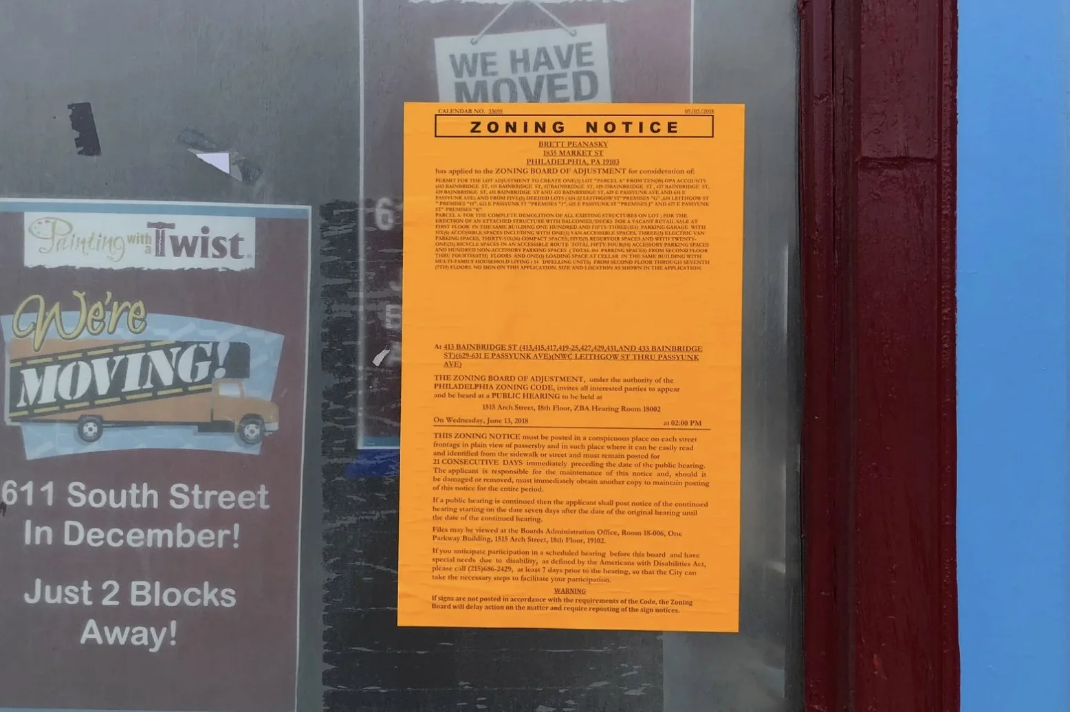 These vivid orange signs indicate that some proposed work is prohibited by the Zoning Code at that particular location. The Zoning Code is a collection of guidelines created to keep your area safe. For additional information, consult the City's Zoning Quick Reference Guide. To perform something that is prohibited by the Zoning Code, the property owner needs to obtain special authorization from the City's Zoning Board of Adjustment (ZBA), known as a variance. The orange posters will specify the nature of the work and the time the builder will show up at the ZBA to request the variance. Attending that ZBA meeting to support or oppose that variance request is within your rights. The orange poster shows the time, date, and place of the ZBA meeting.